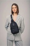 The adjustable strap makes it easy to use as a crossbody bag, over the shoulder, or as a backpack. It features zippered exterior and interior compartments.