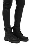 Ayakmod Black Nubuck Fur Lined Non-Slip Sole Zippered Lace-Up Women's Boots 24090 Z